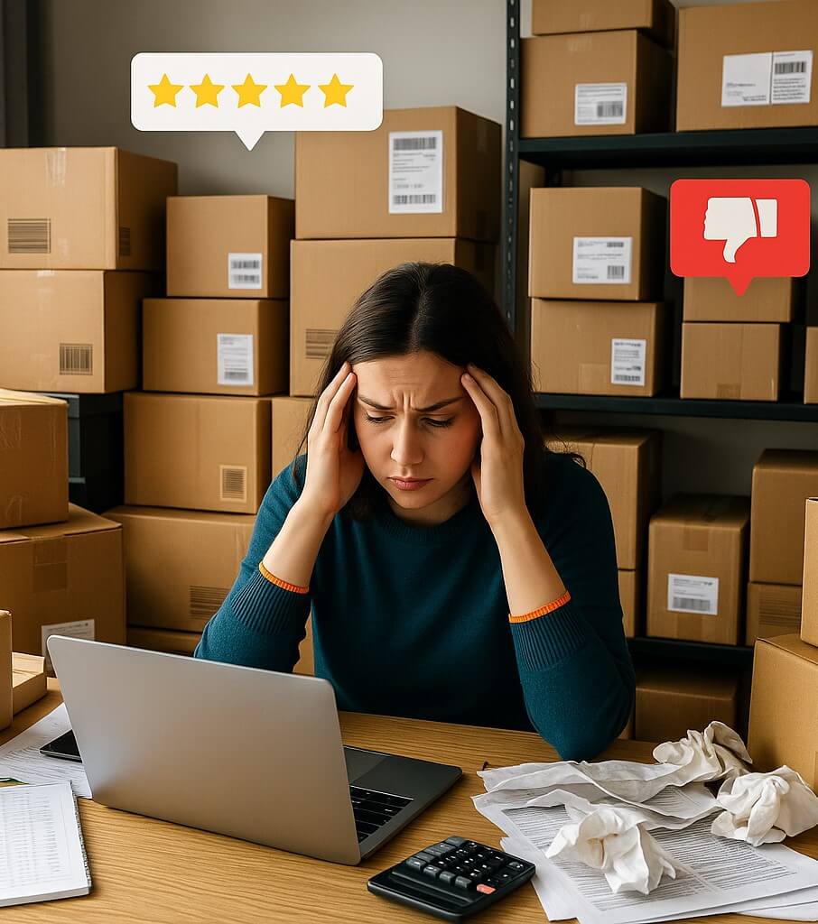 Manter estoque em casa ou depender de soluções improvisadas gera erros em pedidos, atrasos, devoluções e avaliações negativas.